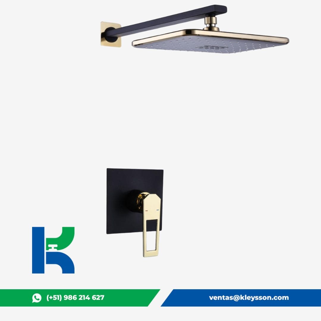 / Mezcladora Monoc.Minimalista Canopla Cuadrada + Cabeza De Ducha Sexy Soul Bronce Black & Gold